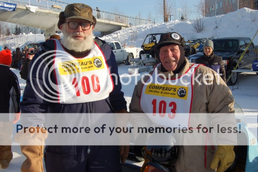 In town (Fairbanks, Alaska) today they had the "Tired Iron" snow machine race, so Dian and I hauled the machines down and spent the day on the river watching.  Today were old machines with "young" men racing them, the rules stipulate the older the rider and machine the more lead time they get.  It was an inspiring day to say the least and this fifty year old felt like a kid watching these "kids"   Tomorrow are the radar runs and I hope to post more pictures.  I hope you enjoy these and they make some of you feel young again.