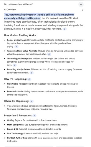 Quote from: nastygunz on December 30, 2025, 07:10:10 PMWith the high cost of beef this thread made me wonder if cattle rustling was still a thing-