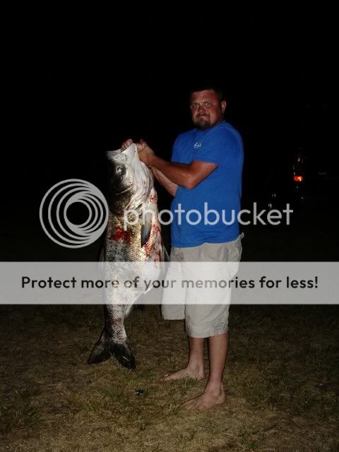 the wifes camera keep screwing up i had already picked it up three differant times i think i was telling her to hurry up already or something along that line when she snaped the picture. the fish weighed just under 64lbs it was a dandy.here is another picture