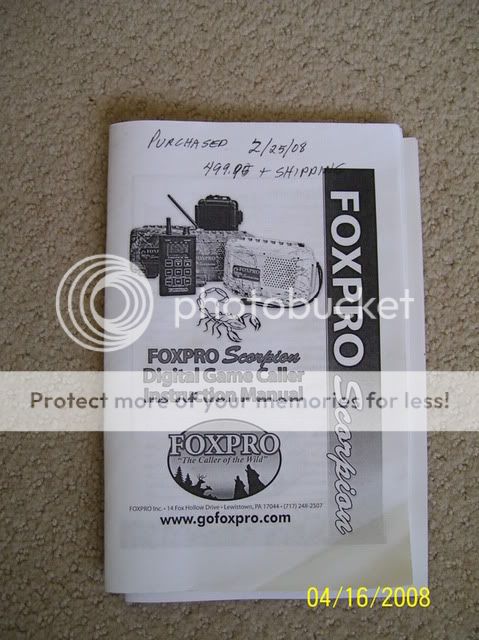 I finally saved up enough money recently to purchase a FoxPro Scorpion electronic caller.  I ordered it directly from FoxPro and received it in mid February.