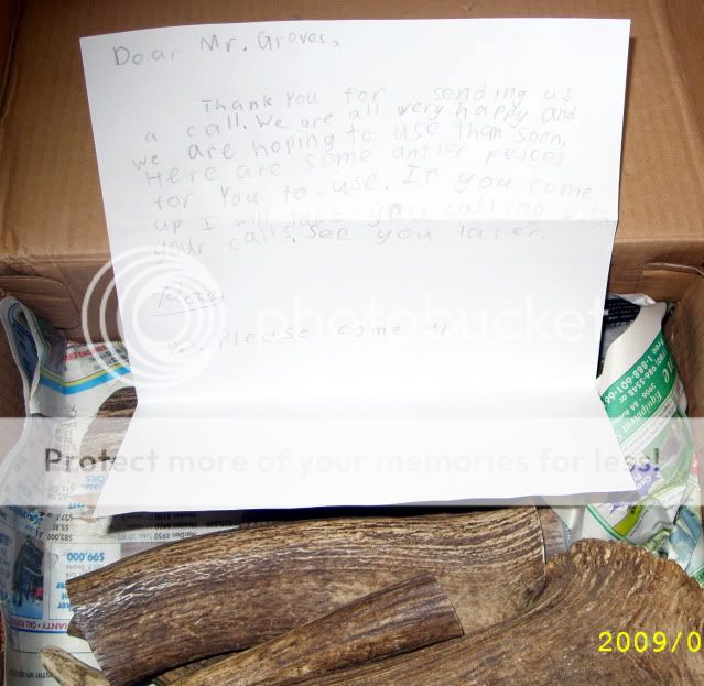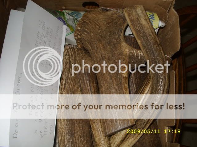 I get home from work today to find a box on the table,I looked at the return adderess and was pretty sure what was in it,cause I was asked how I wanted it cut.It is Elk antler and wasn't in any real hurry to open it.
