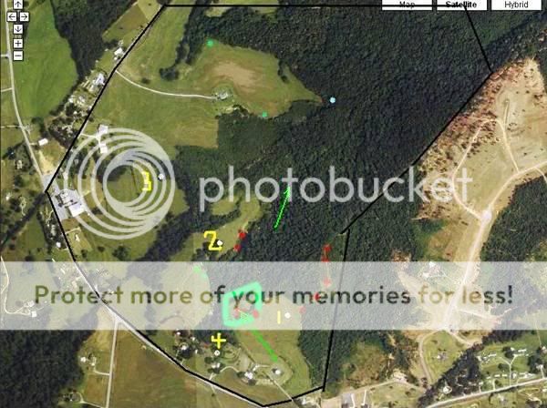Jim you mentioned to this picture without all of the fill ins. I have another piece of property that I will do the same thing, except I will hold off on giving out the answers. Good idea. It is things like these that help out a new hunter, or at least it did me. Except I had to use the phone and try to explain what I was seeing to Jimmie. Then we talked it over and found out the best strategy.