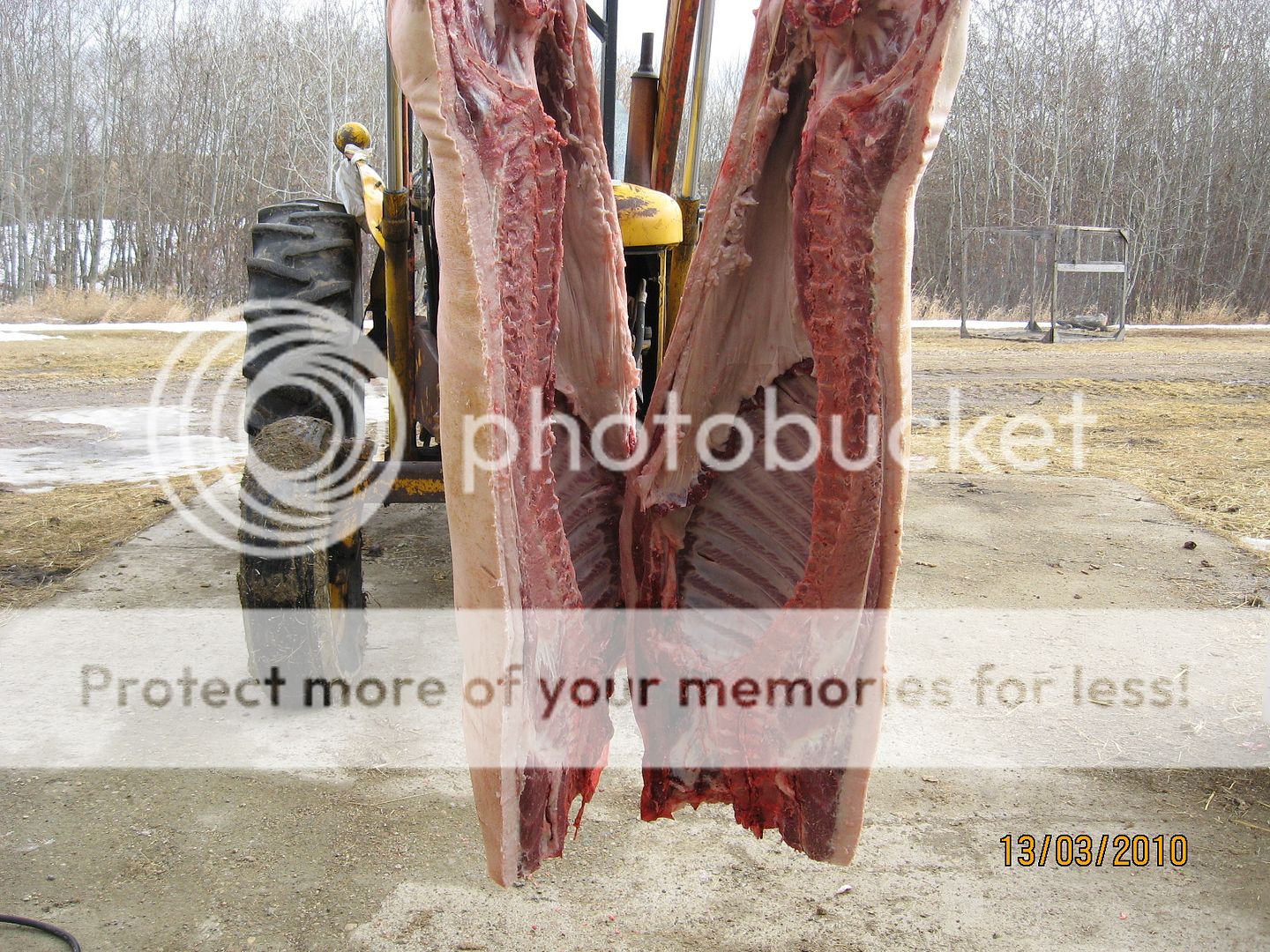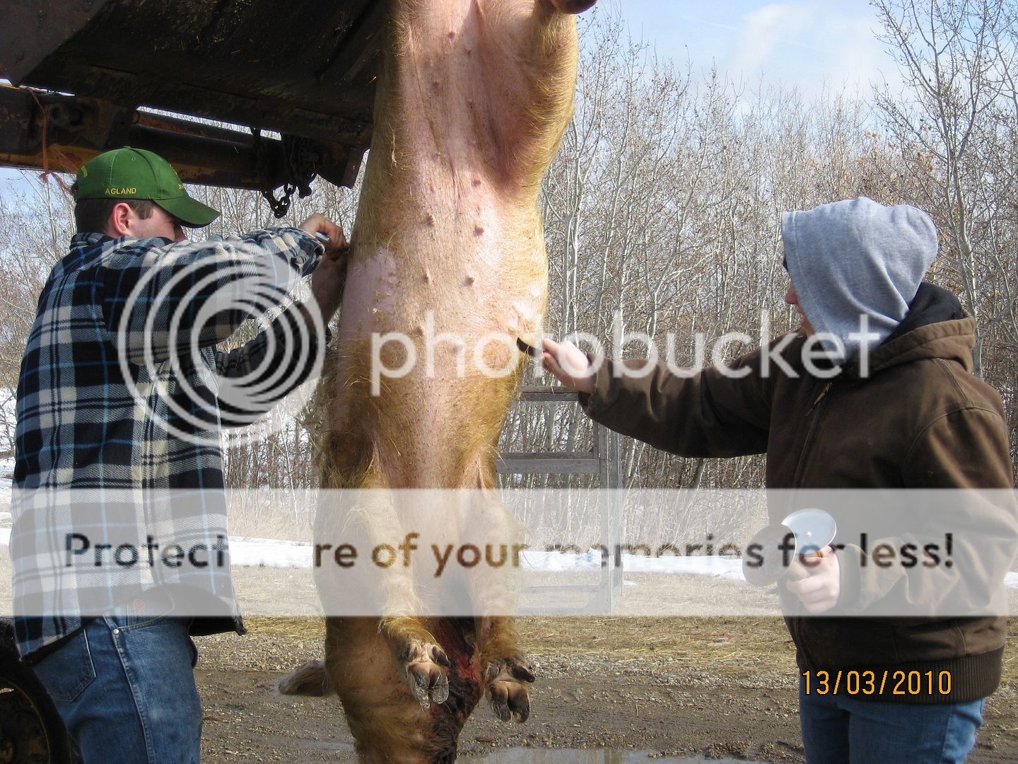 I've never done the whole process myself, just raised them, put them down, and hauld em off to a butcher.   One time we loaded one on the back of the truck first then wacked em, he smashed the tailgate and ended up falling off thrashing and bruised up the meat pretty good.  ( hold my beer and watch this type of deal )