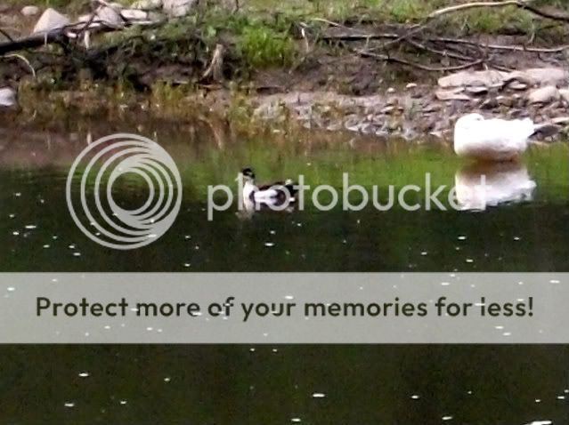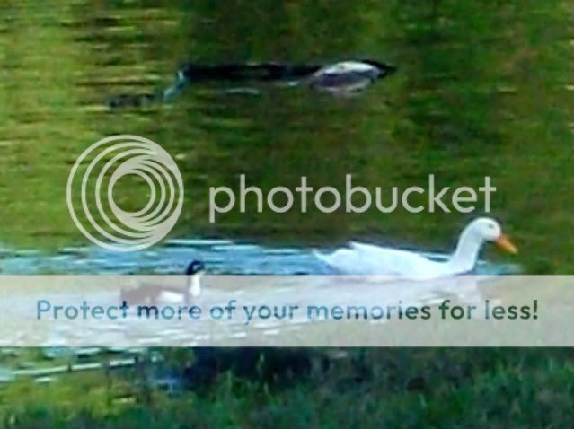 I'm pretty sure this is a hed woodie hanging with the tame s.o.b., its hard to tell with the quality of the photo.  I had to digi zoom.     They were insepartable and the tame s.o.b run off the mallards that were feeding there.