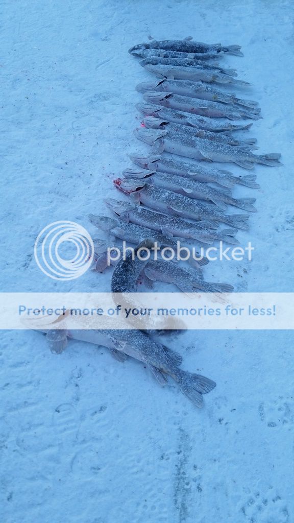 Pictures of our first Ice fishing trip for Pike, kept 17 for the freezer.