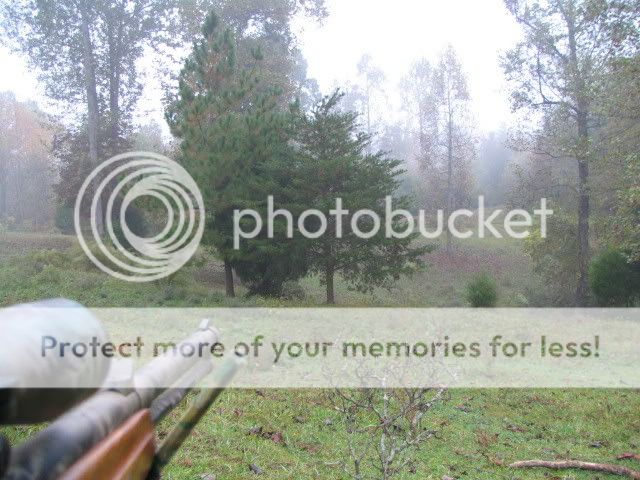 The first couple of stands were dry, though on the second stand I could have swore I heard one run up behind me, then take off. Cause that was the down wind side and being by myself I had no down wind gunner. So I moved on deeper into the woods to where a big slightly grown up pasture is. When I setup I didn't like the stand at all but I had already walked in to deep to back out now. So I made the best of it. Here is what I was looking at while I was calling.