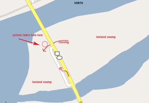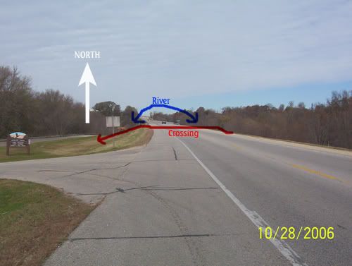 Brent gave me a pretty good idea.....(this is going to cost me, I'm sure) ...of entering the woodline on the left of the last pic, and going in directly between the two rivers. That puts river behind me, river in front of me and highway to me back.