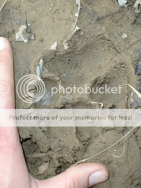 i dont think they were any claw marks, i hope it is a cat and i get to see it. the pic is very close to the real size and thats quite a bit bigger than the cat tracks ive found so far.