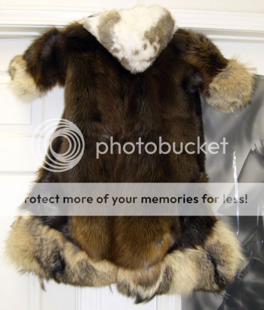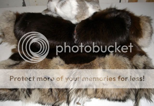 If anyone is interested, three large beaver hides, one yote and $175 for me to make it.
