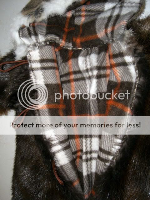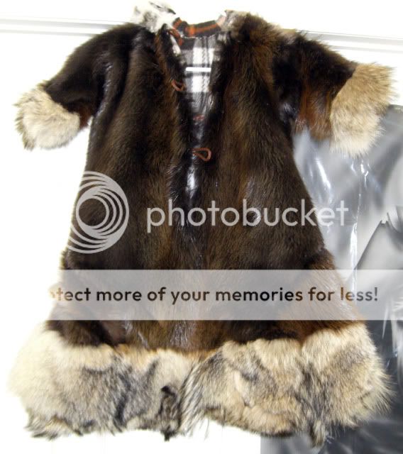 I was asked to make this almost a year ago for a gentleman whose wife was having a baby in July. He trapped the beaver and the yotes himself, sent them off to be tanned and then sent them to me. This is called a Snowsack on the pattern that I have. The bottom is closed, the sleeves are closed. I think baby will be able to use this for two winters and then it can be sent back to me to be made into a coat!!