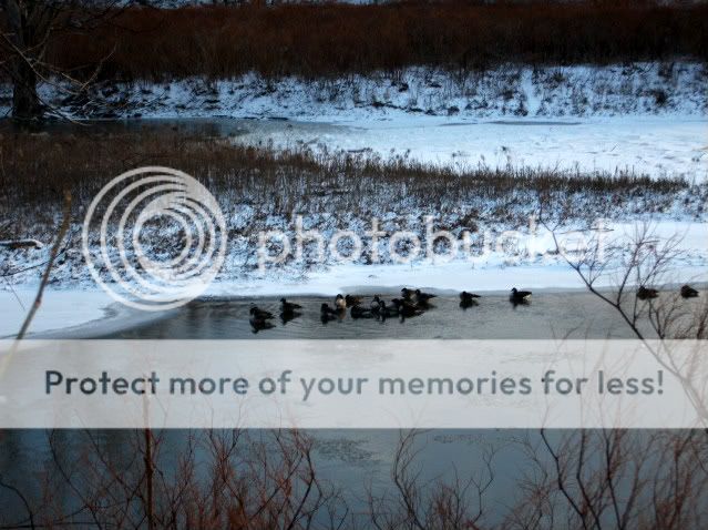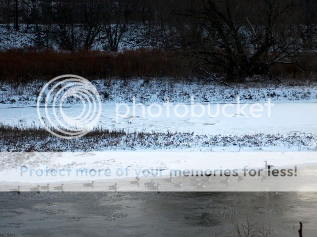 Yep Open water on a farm pond. Its not the first time I have ever seen it. First time I have ever seen a swan frozen in though. When we came back through you could see the "holes" where the ducks were. The swan was still there with its head laying on the ice. Came back past the pond later in the day and the swan was gone and most of the ice had melted. As to what type of ducks/geese they were. I am pretty sure they were the kind that fly and swim. I am not up on my water fowl.  :shrug: