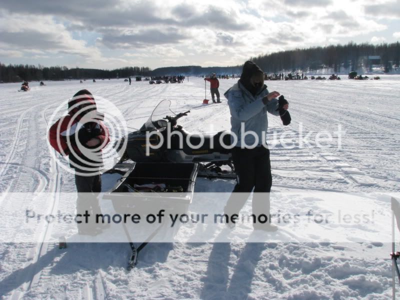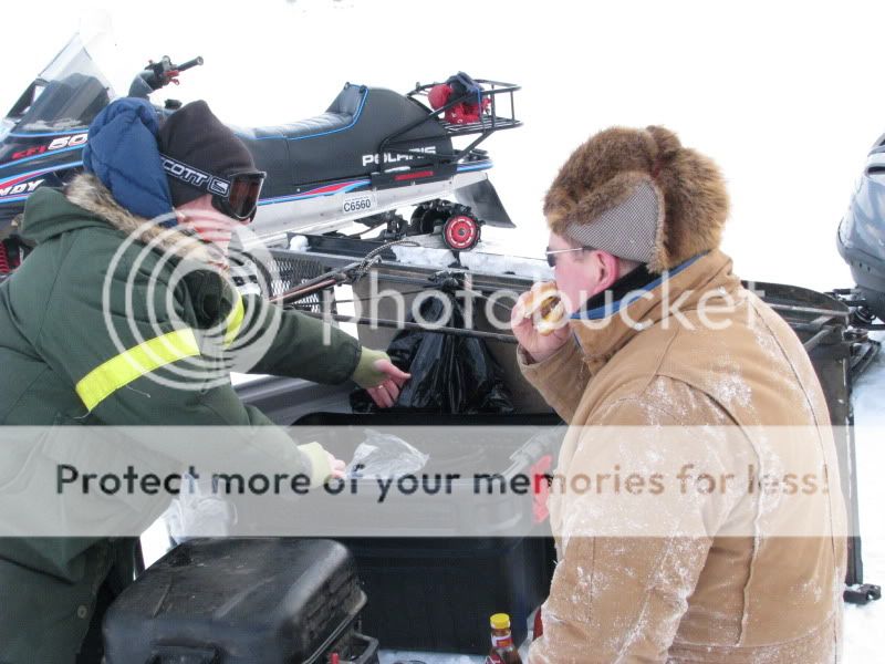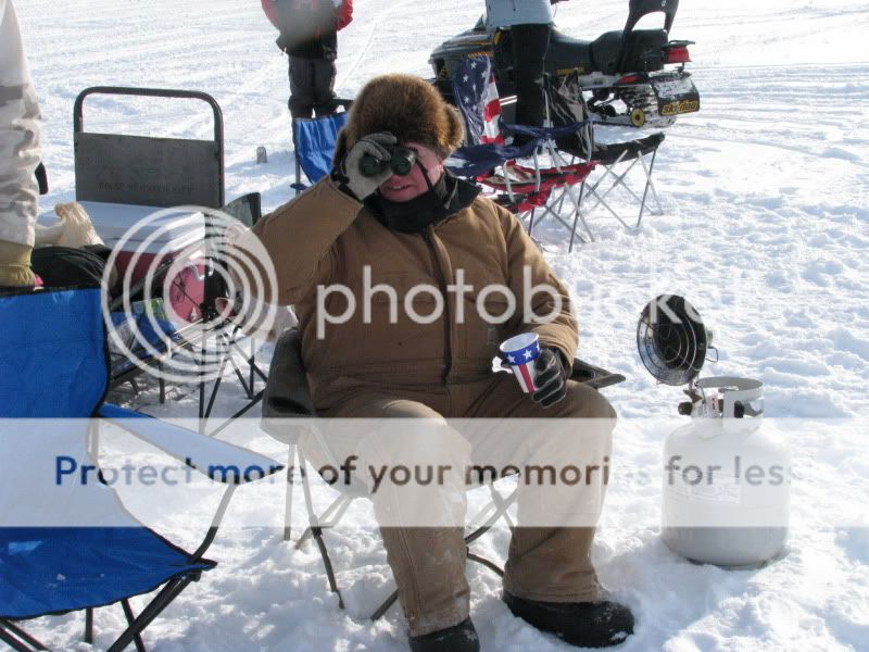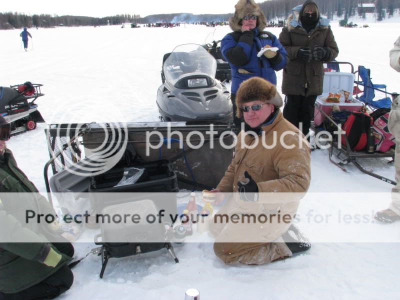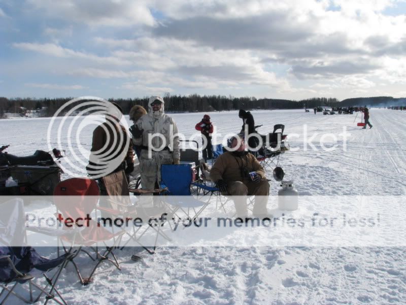 Jerry, not sure how cold it was yesterday, but the wife said here -40 boots weren't keeping her feet warm.  :biggrin: My best guess was it was right around 10 degrees or so. Its a lil over an hour way from the house then a short snow machine trip into Long Lake. Yes, there were planes around us, landing behind us, on the other side of the lake, buzzing over us, and there was even one helicopter that landed down from us.