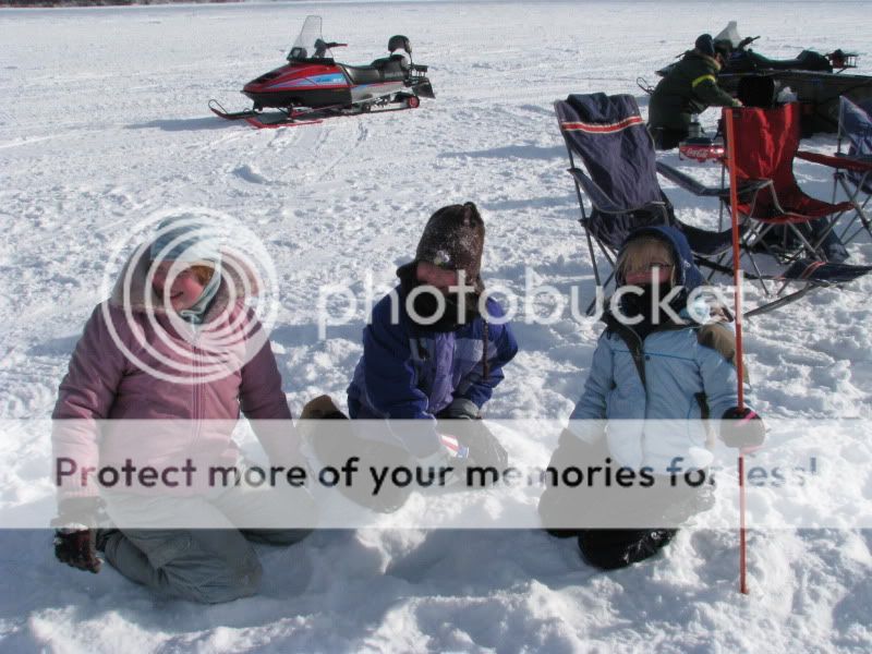 The girls digging down to the ice on the lake. Kenna is mine on the right.