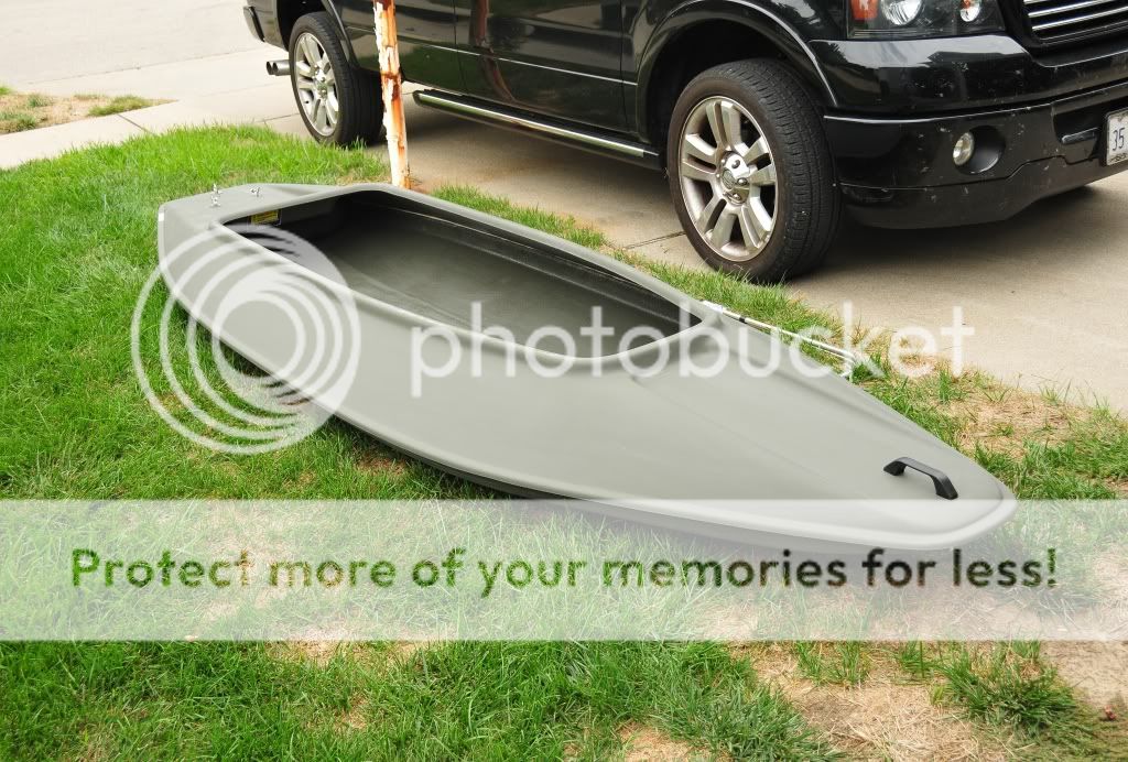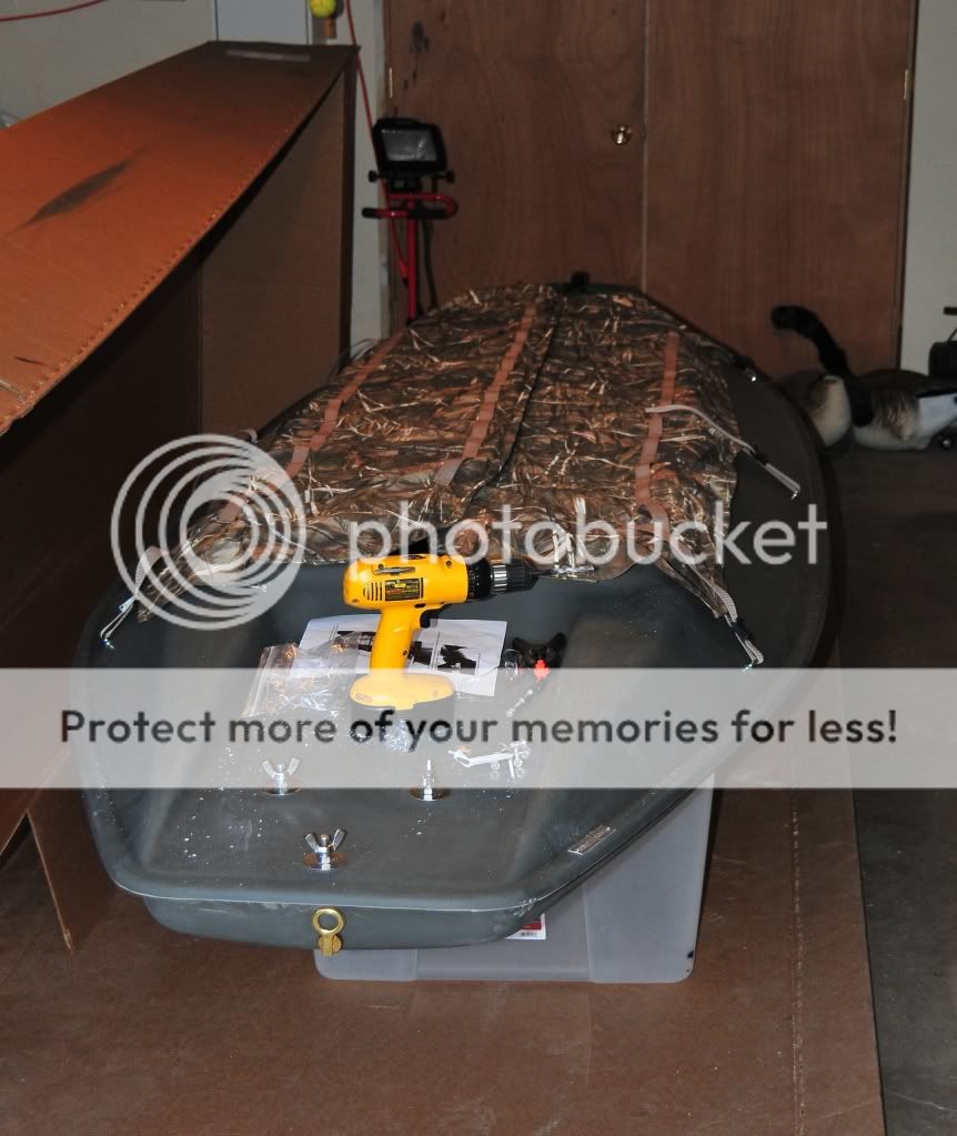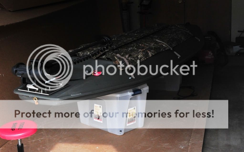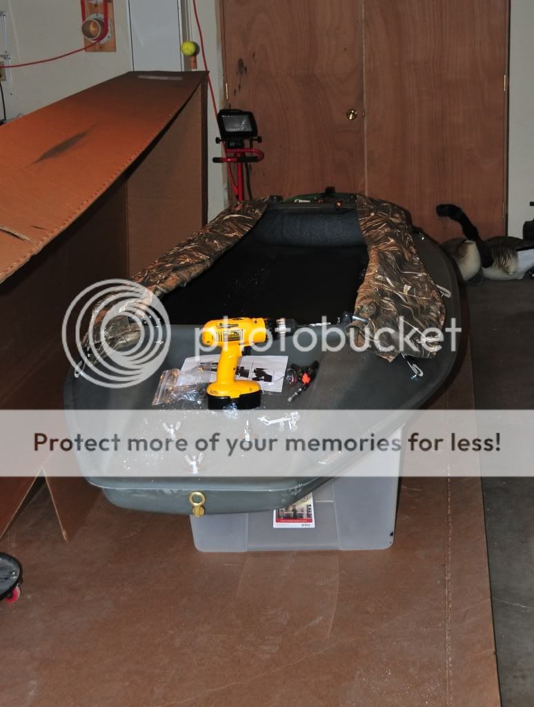 I bought a MoMarsh layout boat last week, to help me get into some new areas to hunt ducks this fall.  I've been working on it this week to start getting it ready, as duck season can't get here soon enough!  It's far from ready for duck season yet, as I still have to paint it and brush it up.  Another thing I will do to it is cut the shaft down on the trolling motor.  The shortest shaft this model of trolling motor comes with is 48" but I'm going to cut it down to around 30" or so.