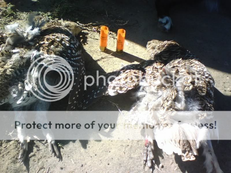 I decided to hunt birds again this year. I haven't hunted birds for about 25 years now because I don't cook and nobody seems to want them. I finally found 6 sharptail grouse, and watched where they had landed. 2 flew way off over a big hill and 4 landed on the side. I grabbed my shotgun and went for a walk up to the area where the 4 had landed and as I got close 3 took off. I pulled up, fired, jacked a second round in, lined up on the second bird, fired, jacked a third round in and realised that I wasn't sure if I could have 3 or 4 chickens. As I brought the gun down, I saw  the fourth bird take off, and the first 2 laying there. I was a bit overjoyed when I realised that after that long, I had fired 2 shots and gotten 2 birds. I think my dad would have been proud. Sorry about the cell phone pic.