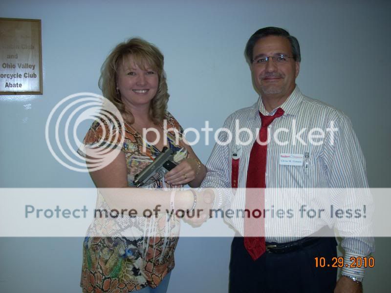 This lady won the grand prize drawing for a Kimber Pro Carry .45!!  She was really happy!