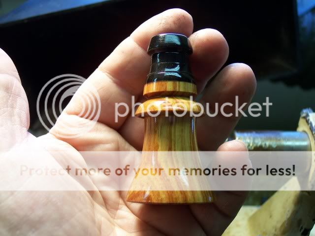I was busy in the shop again today.....still loving that cow hon and wood.....this one is a Black cow horn mouth and a tulipwood body.....thought ya'll might like to see it. I got lucky again, it is seamless...these are fun to me, and I love to make them...it takes me too long, but I think it is worth it. The only problem is, I want to keep 'em all ROFL!!!!!