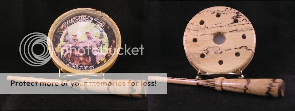 Here is a spalted maple pot call with matching striker I made for a couple celebrating their 20th anniversary.