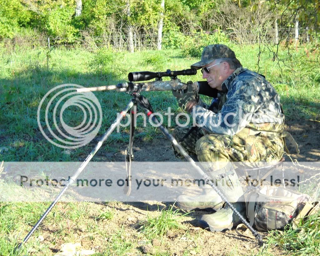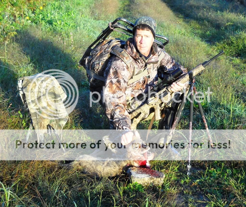 39 degrees, light frost, virtually no wind so Possumal and Possumal, Jr. just had to get after Wiley this a.m. at first light.  We went to a new farm I just got permission to hunt down in Pulaski County, about 65 miles from Nicholasville.  It was a really beautiful place to hunt, and Possumal, Jr. got blood all over the DPMS Prairie Panther AR I sold him a few weeks ago.  He killed a nice young female, nearly taking her head off where the neck meets the shoulder. He was happy and I was even happier.  After the eye problems and operations he has endured for the past year, he had a lot of doubt about ever getting to hunt again, but I had faith in God that he would.  I also know how tough he is mentally and physically, and it sure was great to get out with him again.  Called in a pair on the first stand and he did the dirty deed on the female at about 95 yds.  We saw another big one but he was too far and the terrain too open to get him to commit with the wind to his back.  Went to another part of the farm, and I called in a young male, and folded his tent for him at 225 yds where he was hung up by a brushpile, DRT when the 70 grain Blitz King out of my Savage 243 hit him dead center in the chest.  I must have hit the chest bone dead center because he was a total mess so decided to not post the picture, far too messy.
