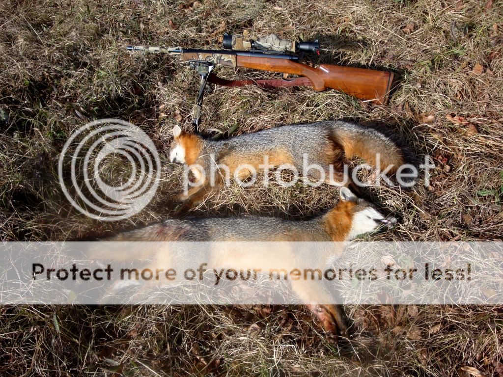 Sorry to disappoint.  The fur damage was actually awful.  The photos were strategic to conceal the gore.  I'm shooting a 40 grain Sierra hollow-point which we chronographed today at just over 3K fps. (21.5 grains of H4198).  I chose this bullet for coyotes but to be honest, I've never found "the" centerfire load for gray fox.  Over the years I've learned everything tears 'em up pretty bad unless we use the shotgun.  I even used 22 WMR and 22 Hornet in my quest for the perfect centerfire fox round.  After several runners with the WMR my partner and I figured the hornet was the answer, but we even had bad fur damage AND/or runners with the hornet too.  Of course shot placement means everything here.  If you're lucky enough to get a facing shot fur damage is always minimal.  It's the broadside shots that do the damage.