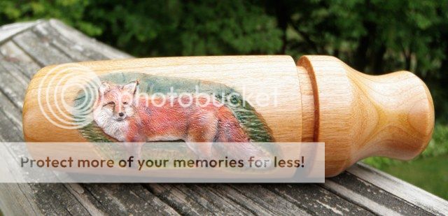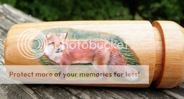 Just about every evening a pair of Red fox cruise through the bottom field here at the house.  You can follow their progress by the birds squawking.  I never seem to have the camera with me, so I've yet to get a photo of them.  Long story short, It got me thinking that I have not done a Red Fox carving in a while?  So I did this one this afternoon on a Cherry enclosed reed.