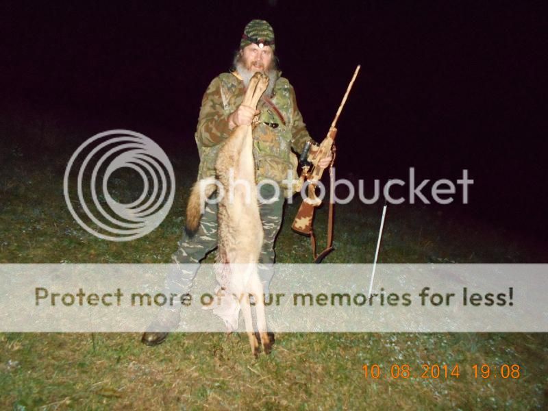 Last evening Jon and I headed out to call my sister's farm in OH.  It was dark when we walked up onto the crest of a meadow.  I stayed on the right side while Jon walked on around to the left side.  I was not even set up when I heard Jon's gun crack.  Then a second shot and I heard the "plop" of a bullet connecting with flesh.
