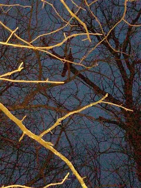 Last Sunday evening I got a bit too close to the roost and didn't end up with a shot before they flew up, so I had to sneak out at dark. I'd seen one bird go up right where I needed to walk out some hundred yards away by its self and me with little other options. I successfully snuck away from the roost without spooking them, but then the one bird in my way on the way out... I still had to deal with. But she left me with a memory. It was a hen...I seen that plainly. She roosted maybe 20ft high max in a smallish tree. I got beside and under her, and then past her without spooking her off...but the ground was real quiet from rain and lack of leaves . I kept creeping inch by inch expecting to flush her But never did!...But in the process I took pics and video of her....even with the flash and her eyes lit up!