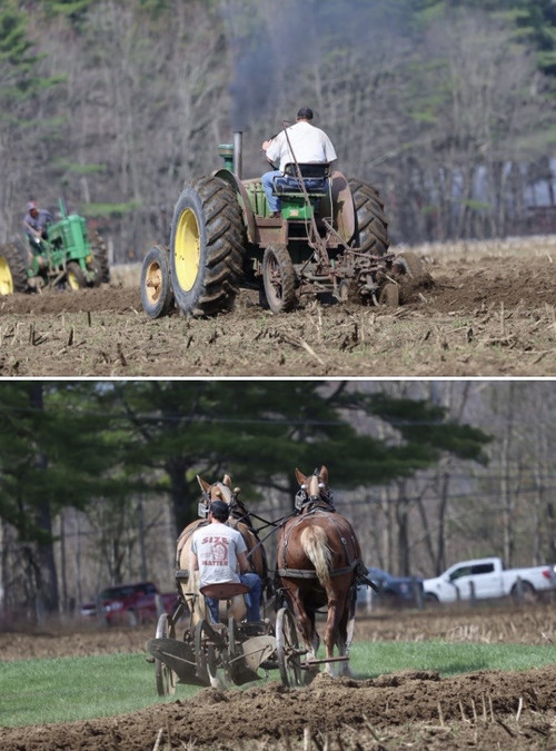 That's Bob🐶. Man, you can definitely see the results of the industrial revolution when you see how much field a team of horses plow compared to a tractor. There's still quite a bit of horse logging up here though doesn't tear up the woods as much as machines and the out of state flatlanders that own land up here like the horse aspect. It makes them feel like hardy pioneers.