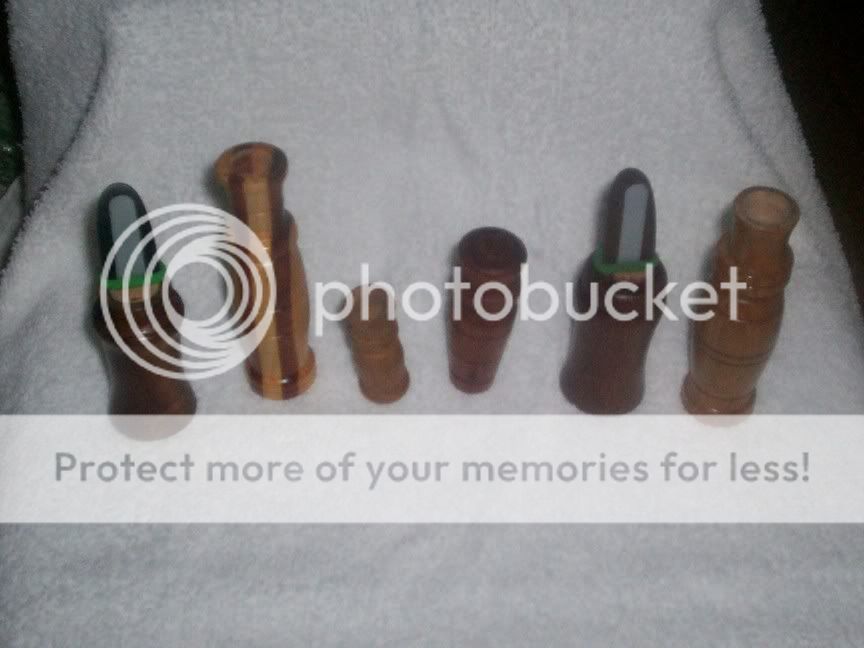 Stray your pics a little small but it appears ya have osme nice calls in the collection.  :congrats: If your refering to the second picture as calls you made? The laminated call looks to be cut at an angle giving the spin a twist look? If so nice touch. Looks good.