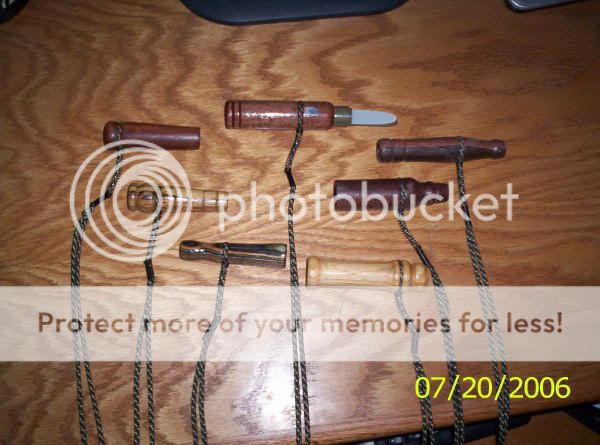 Jim, That hammer handle is on the bottom right. These are many of the first calls I built. A couple of them were made by my father too. He has been trying to out do me since that first one off of his lathe.  :wo: