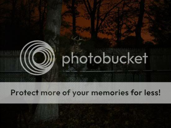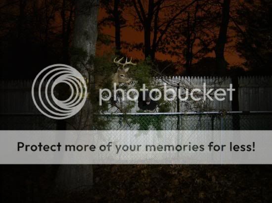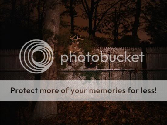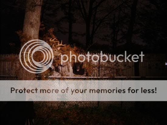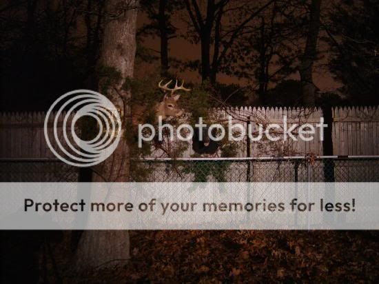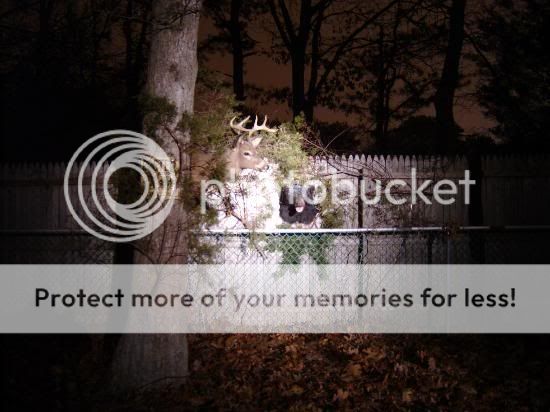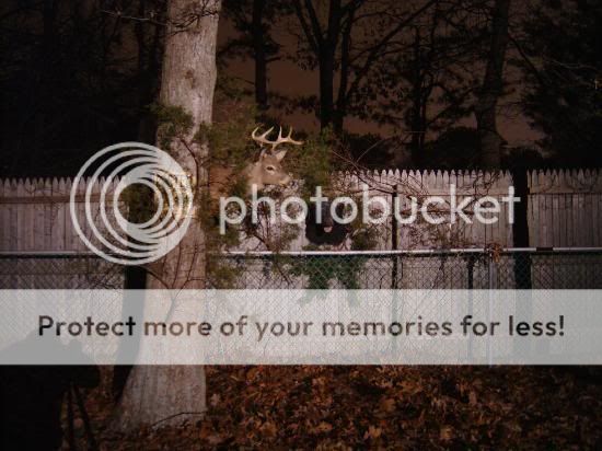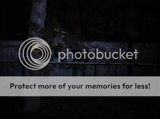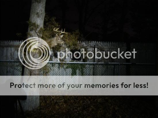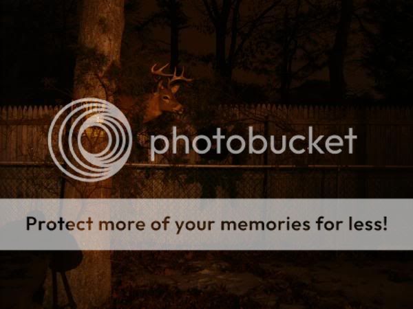 The deer head mounted on the tree is exactly 26 yards from my second story window from where the lights are shinning.