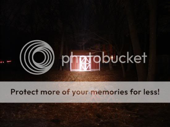 Lets start with the popular Surefire G-2 (or 6 P) at 65 lumens, the target is the 8 by 12 tool shed at 30 yards.