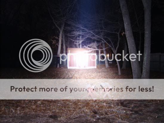 I thought you guys will be interested to see all these lights in action, and I pointed them to a point in the fence next to the tree with the beams and camera shooting from a 35 yards distance, this is the longest distance that I have in the back yard