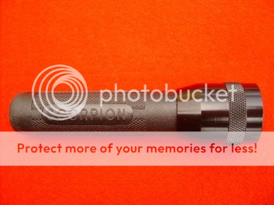 # 7, this is A Surefire Centurion II in black with the P-60 lamp (65 lumens) this represents all the others Surefires lights that use this lamp, G-2, 6P. Z-2. etc.