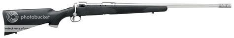 New hinged floorplate, AccuTriggerTM, stainless barreled action, free-floating, button rifled barrel, swivel studs. Adjustable Muzzle Brake reduces felt recoil by 30%. $650