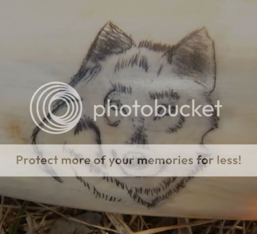 This is my first scrimshawed wolf howler. It is not for sale yet.