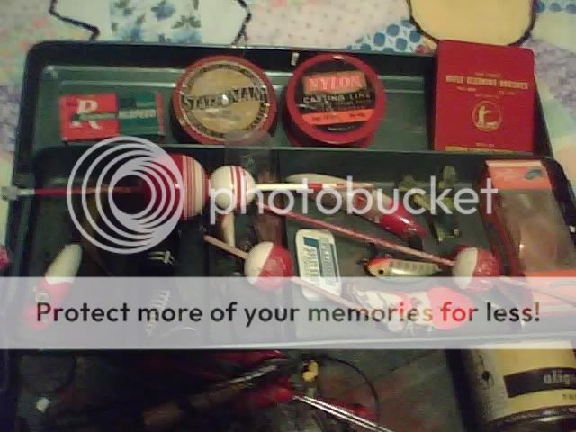 It is an old tacle box full of stuff that I got at a yard sale some years ago........I sold one real beat up musky plug for $60 on E-bay and then just forgot I had the rest for about 8 years or so. I do not do anything with them and they are still in that same old metal tacklebox so I will try and get some pics for ya. and set up an auction if there is enough interest.