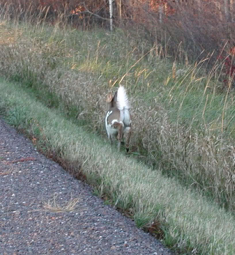 The deer wasn't as bashfull as he should have been, Even after taking off, he stopped for one more look back, out of cover.