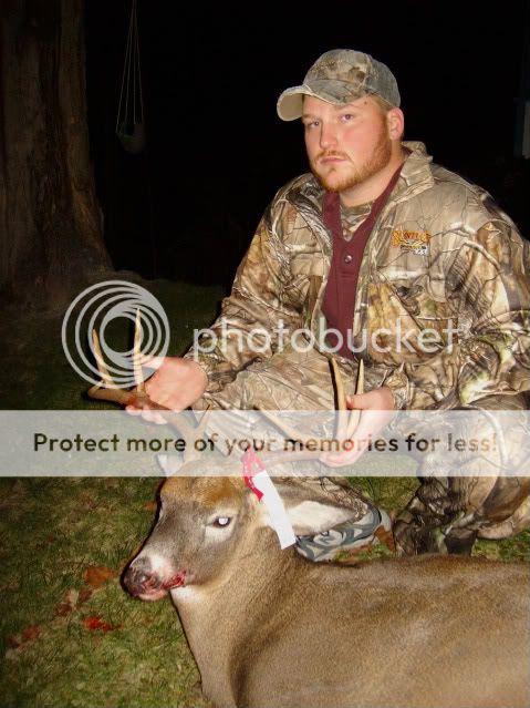 I'm very proud of my ( little lol ) bro, every once in a while he reminds me how he got started in archery.  Tonight I get a call and he's got me beat on bow killed buck.  PERFECT HEART SHOT !!!!!!!