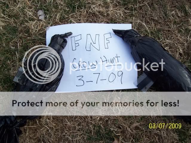 Crow Shoot !!!  Hunt any 3 days in the time frame February 21-April 5.  Take a pic of your total crows accumulated over the 3 day hunt and include a FnF sign in the pic and post it here.