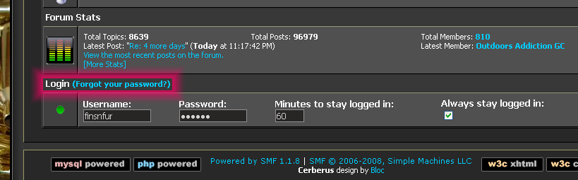 Don't know if anyone else was having the same problem as me but my problem was when I clicked on FinsandFur.net Forums the screen came up with my user name and password already installed as I set it that way,  but just recently I was not logged in so when I clicked on Login it would give me the message wrong Password but I could click on login again and it would log me in. The lost Password at the bottom of the screen was not showing on my computer, only shows when you are logged out. Some how the program was thinking I was logged in but with the wrong pass word, don't know if this makes any sense to you or not. I changed my Password again and it seems to be working now. CC