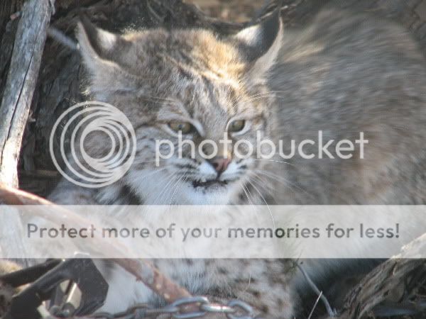 Brad, I love that picture. I had a set just like that by a tree and all I caught was a porcupine. It's been pretty slow lately. Tomorrow I check again. Hopefully I'll have another one. Those ole Tom's should be moving around. My buddies have been calling a few using chicken distress and cat growl. One guy I know got a real beauty. A 36lb. cat. That's a good one. Don't have a picture of that one.