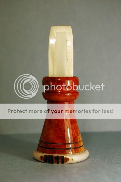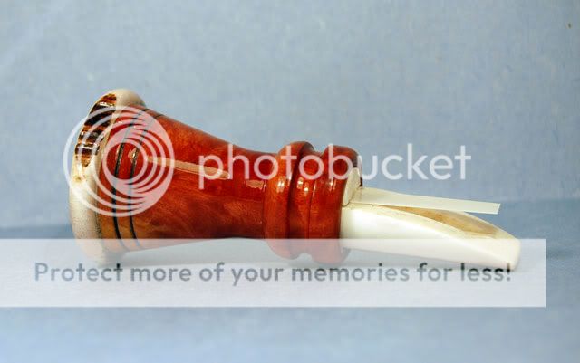 To the predators!  :roflmao:  Guess who this ones for!  :innocentwhistle:   Well that is if he likes it.  This is a Red Mallee barrel with an Elk antler bead. It is followed with one of my o-ring fitted antler toneboards. Both pieces are finished inside and out with my CA finish, buffed and polished to a high gloss.  Let me know what you think!