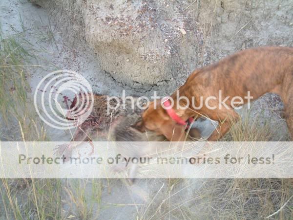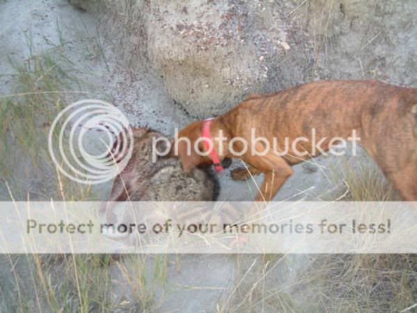 Kimber(pups named after my rifle :eyebrownod:_)working him over!!